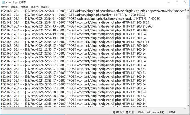 ● 在apache日志中查找shell.php的访问日志,从而得到攻击者的IP的地址